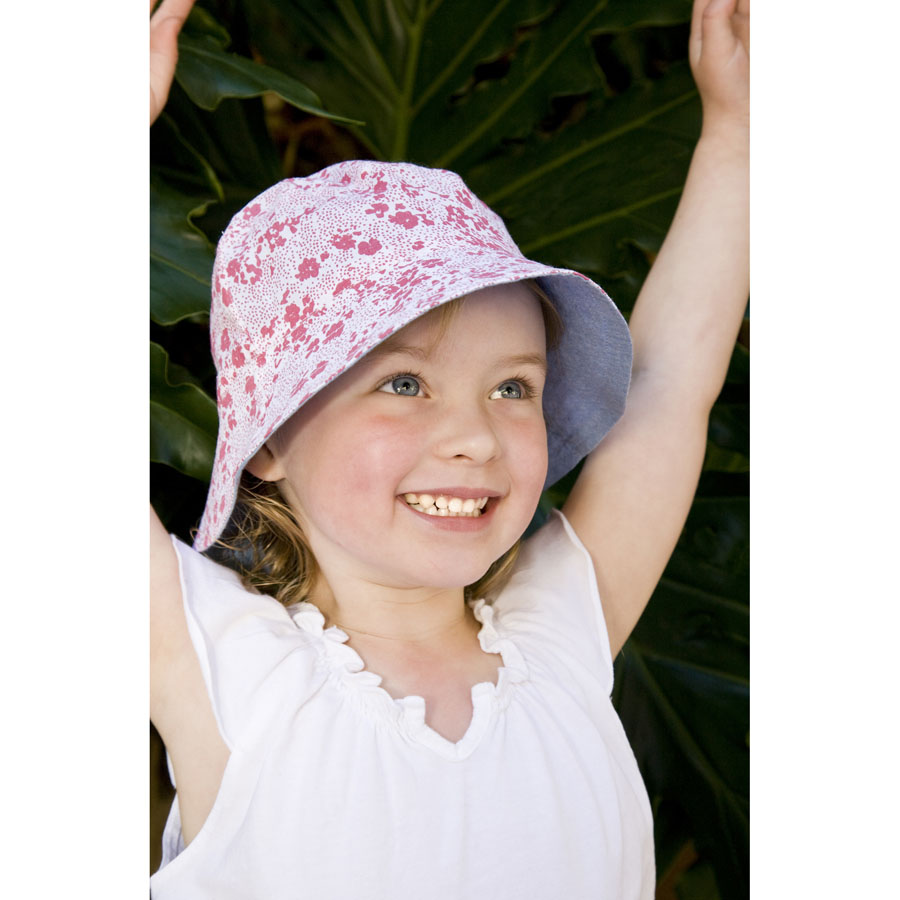 This reversible hat features pretty floral print one side, and complimentary chambray other side. Wide brim for perfect cover. Made form 100% organic cotton ensures fabric is light and breathes well, so little heads won’t get hot.